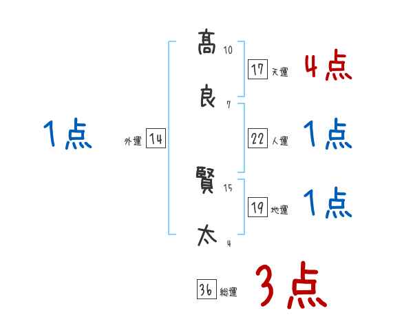 髙良賢太さんの画数の鑑定結果