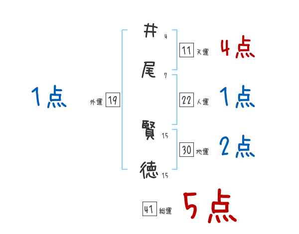 天運![]() | 井尾賢徳さんの天運は11画の4つ星!着実に富や地位を得る幸運な人生。 家系が持つ宿命的な運勢を表します。祖先から受け継いだ苗字ですので自分の力が及びません。家柄を象徴します。 |