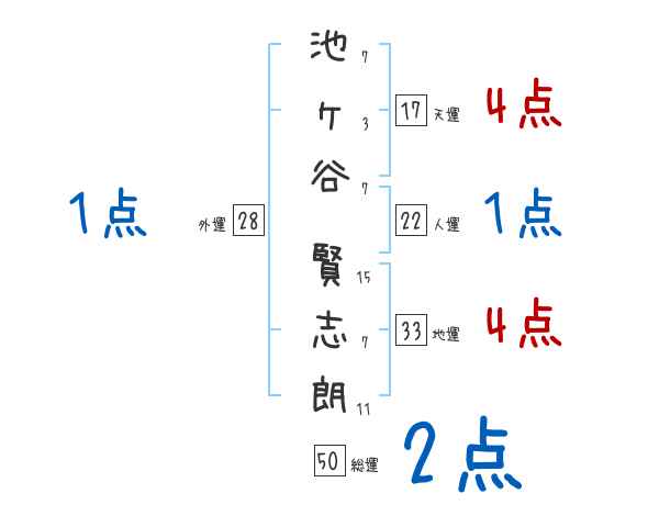 池ヶ谷賢志朗さんの画数の鑑定結果