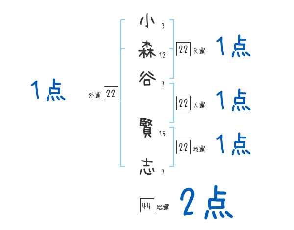 小森谷賢志さんの画数の鑑定結果