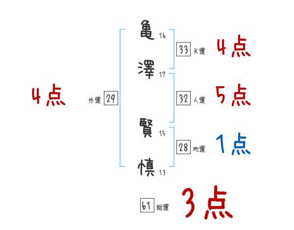亀澤賢慎さんの画数の鑑定結果