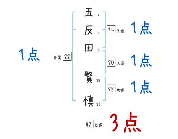 五反田賢慎さんの画数の鑑定結果