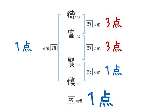 徳富賢慎さんの画数の鑑定結果