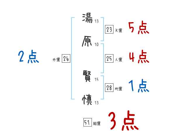 湯原賢慎さんの画数の鑑定結果