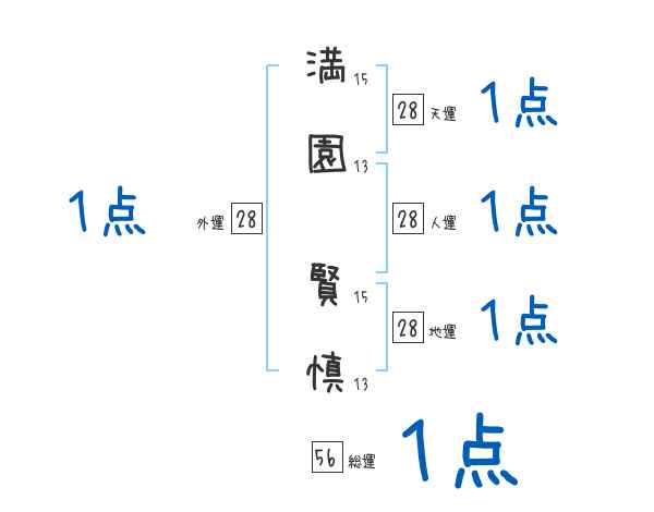 地運![]() | 満園賢慎さんの地運は28画の1つ星!家庭環境に注意。スポーツで活躍できる能力があるかも。 個性を表す基礎的な運勢です。性格形成や対人関係、行動力など家庭環境に影響されます。主に誕生してから20歳くらいまでの若年期の運勢を表します。 |