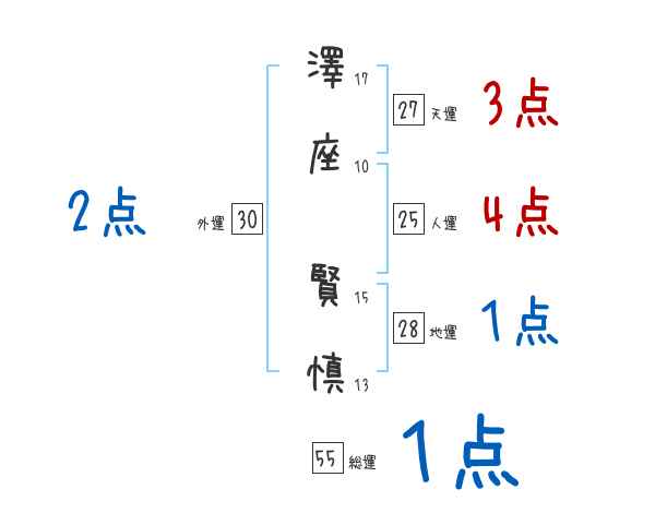 澤座賢慎さんの画数の鑑定結果