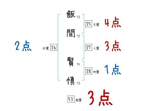 飯間賢慎さんの画数の鑑定結果