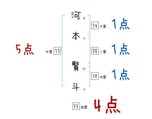 河本賢斗さんの画数の鑑定結果