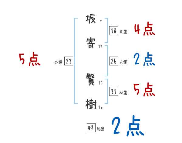 坂寄賢樹さんの画数の鑑定結果