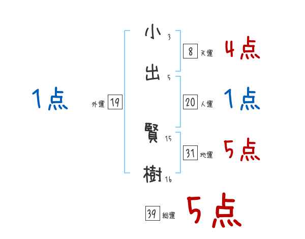 小出賢樹さんの画数の鑑定結果
