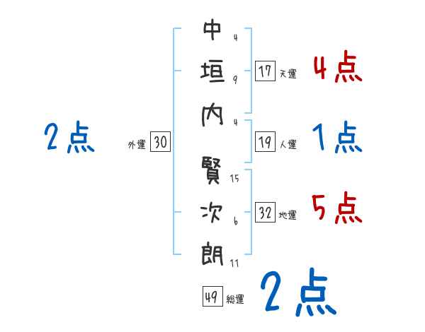 中垣内賢次朗さんの画数の鑑定結果