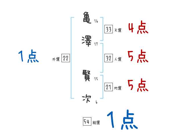 亀澤賢次さんの画数の鑑定結果