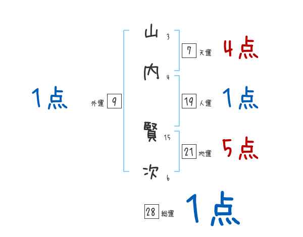 山内賢次さんの画数の鑑定結果