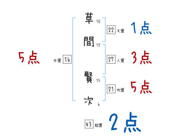 草間賢次さんの画数の鑑定結果