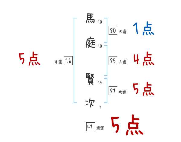 馬庭賢次さんの画数の鑑定結果