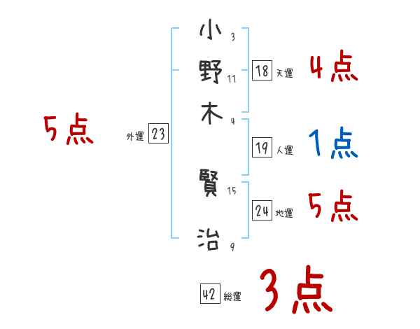 小野木賢治さんの画数の鑑定結果