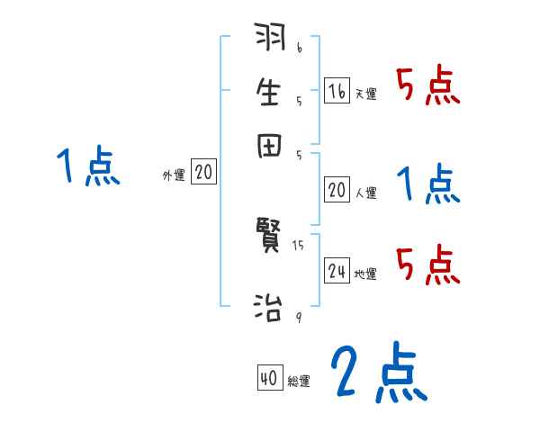 人運![]() | 羽生田賢治さんの人運は20画の1つ星!社交が苦手。人とは違った才能があり波乱万丈な人生かも。 性格や才能などを表す2番目に重要な運勢です。人間関係や協調性、社会的な成功に影響します。主に20歳から50歳ぐらいまでの中年期の運勢を表します。 |