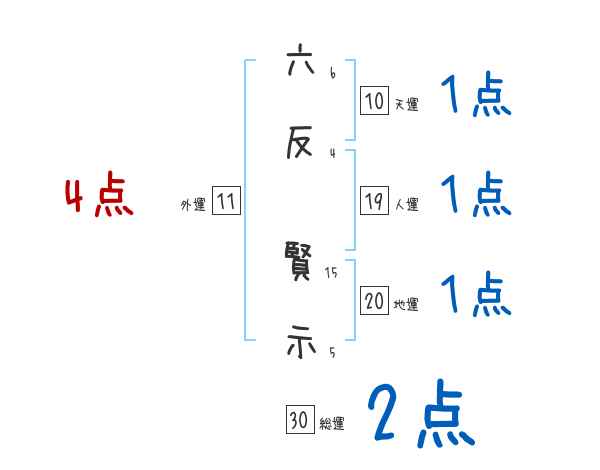 六反賢示さんの画数の鑑定結果
