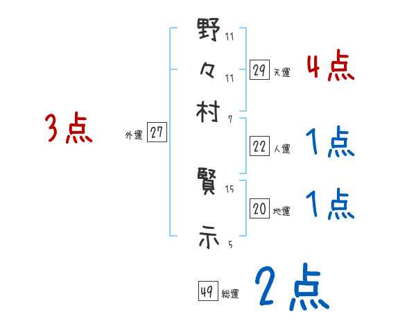 野々村賢示さんの画数の鑑定結果