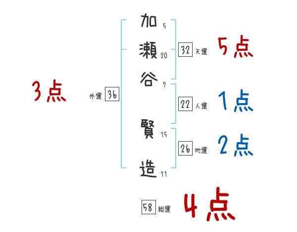 天運![]() | 加瀬谷賢造さんの天運は32画の5つ星!柔軟性があり成功する。チャンスが多く金運が良い。 家系が持つ宿命的な運勢を表します。祖先から受け継いだ苗字ですので自分の力が及びません。家柄を象徴します。 |