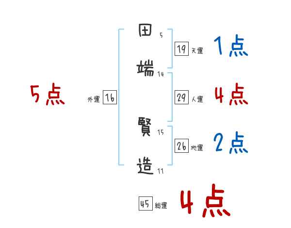 外運![]() | 田端賢造さんの外運は16画の5つ星!人望が厚く大きく発展する。逆転成功が見える。 生活面を象徴する運勢です。外部から受ける影響力を表し、結婚運、家庭運や職場、環境への順応性を表します。 |