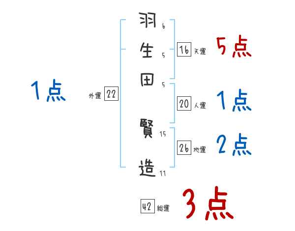 地運![]() | 羽生田賢造さんの地運は26画の2つ星!波瀾万丈かも。信頼できる人を大事にしましょう。 個性を表す基礎的な運勢です。性格形成や対人関係、行動力など家庭環境に影響されます。主に誕生してから20歳くらいまでの若年期の運勢を表します。 |