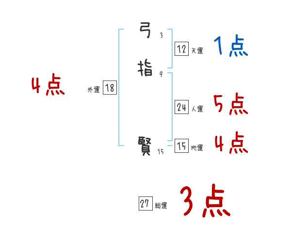 弓指賢さんの画数の鑑定結果