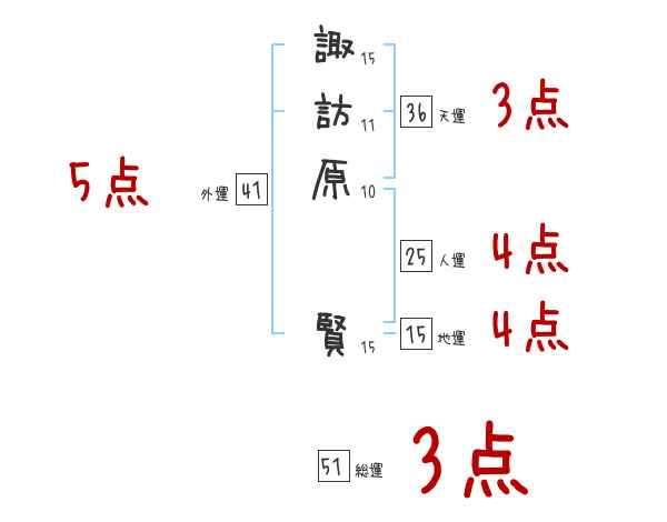 諏訪原賢さんの画数の鑑定結果