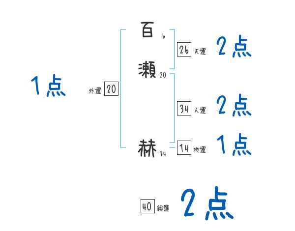百瀬赫さんの画数の鑑定結果