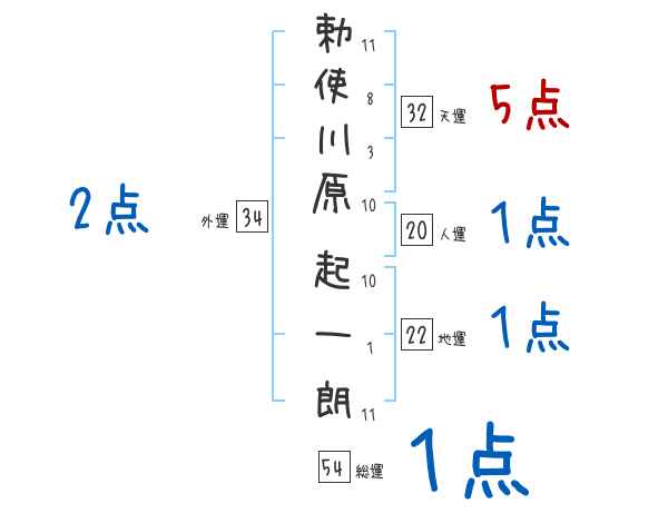 勅使川原起一朗さんの画数の鑑定結果