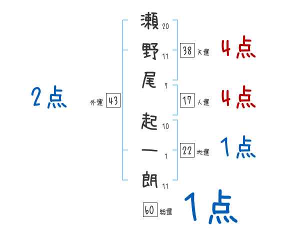 瀬野尾起一朗さんの画数の鑑定結果