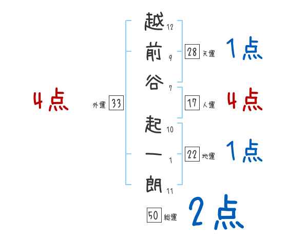 越前谷起一朗さんの画数の鑑定結果