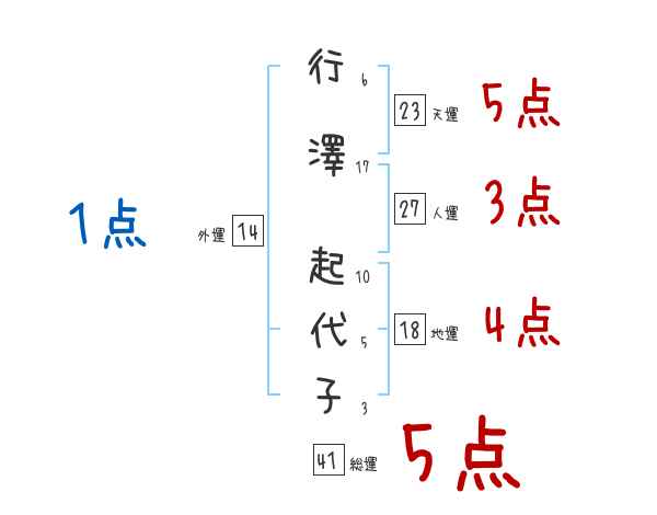 行澤起代子さんの画数の鑑定結果