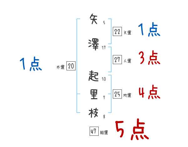 総運![]() | 矢澤起里枝さんの総運は47画の5つ星!実力が開花し発展する円満な人生。財に恵まれる。 あなたの人生を表す1番重要な運勢です。生涯を通じて影響する総合運となり、主に50歳以降の晩年期に影響を及ぼします。 |