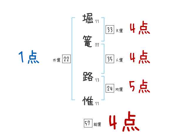 堀篭路惟さんの画数の鑑定結果
