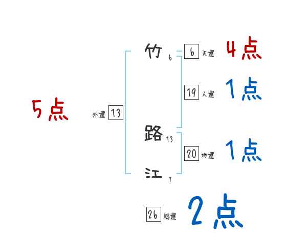 竹路江さんの画数の鑑定結果