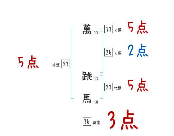 萬跳馬さんの画数の鑑定結果