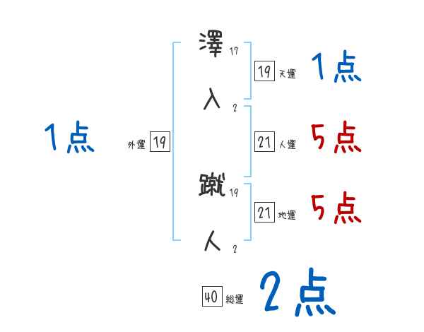澤入蹴人さんの画数の鑑定結果