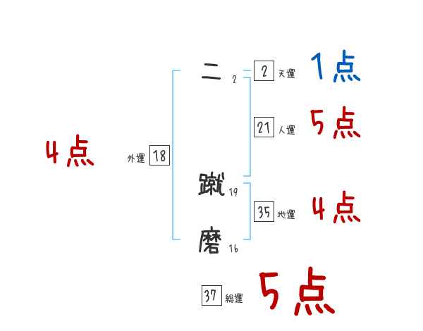 二蹴磨さんの画数の鑑定結果