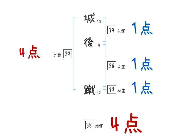 城後蹴さんの画数の鑑定結果