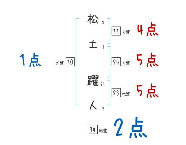 松土躍人さんの画数の鑑定結果