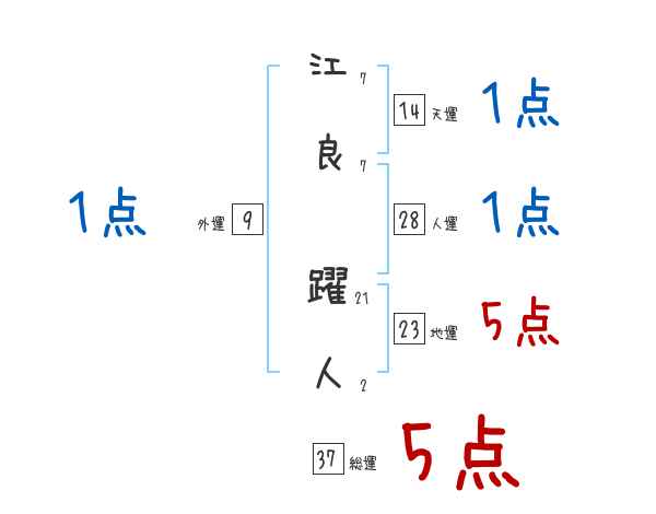 江良躍人さんの画数の鑑定結果