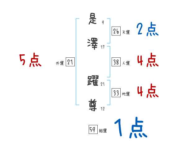 是澤躍尊さんの画数の鑑定結果