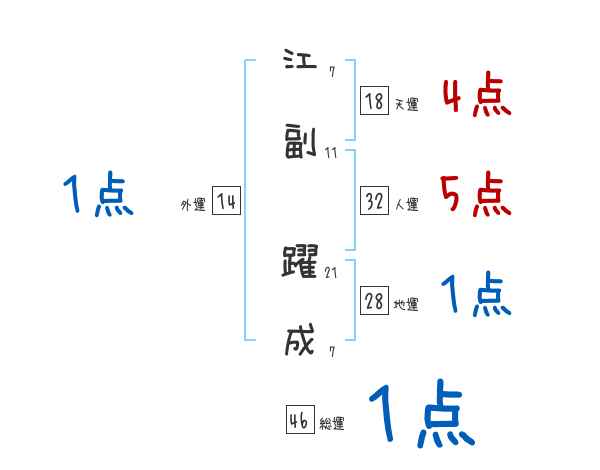 江副躍成さんの画数の鑑定結果