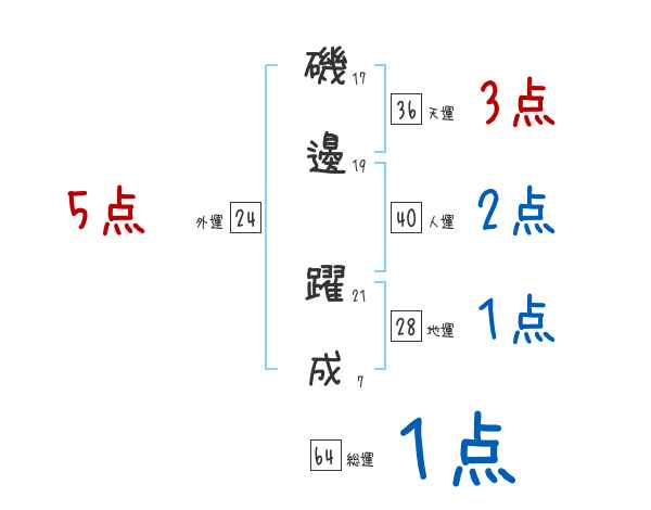 磯邊躍成さんの外運は24画の5つ星