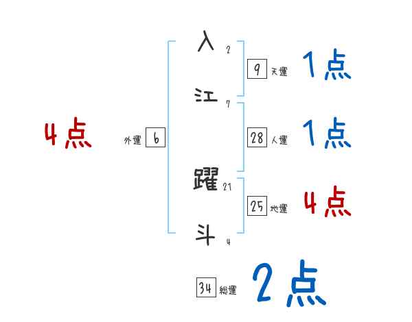 天運![]() | 入江躍斗さんの天運は9画の1つ星!消極的で才能を発揮することが苦手なことも。周りの意見に耳を傾けましょう。 家系が持つ宿命的な運勢を表します。祖先から受け継いだ苗字ですので自分の力が及びません。家柄を象徴します。 |
