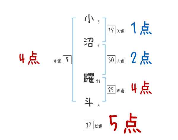 小沼躍斗さんの画数の鑑定結果