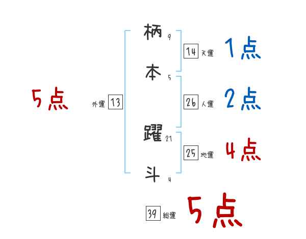 外運![]() | 柄本躍斗さんの外運は13画の5つ星!才能に恵まれ人気がある。名声を手に入れる。円満な人生。 生活面を象徴する運勢です。外部から受ける影響力を表し、結婚運、家庭運や職場、環境への順応性を表します。 |