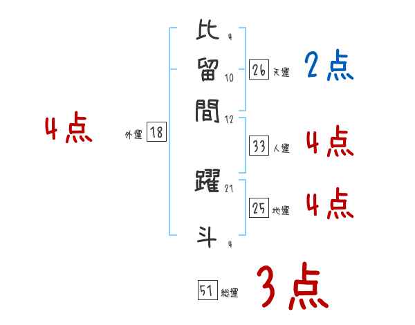 比留間躍斗さんの画数の鑑定結果