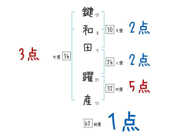 鍵和田躍産さんの画数の鑑定結果